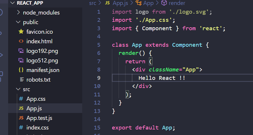 - App.js νμΌμ ν¨μ νμμμ ν΄λμ€ νμμΌλ‘ λ³κ²½