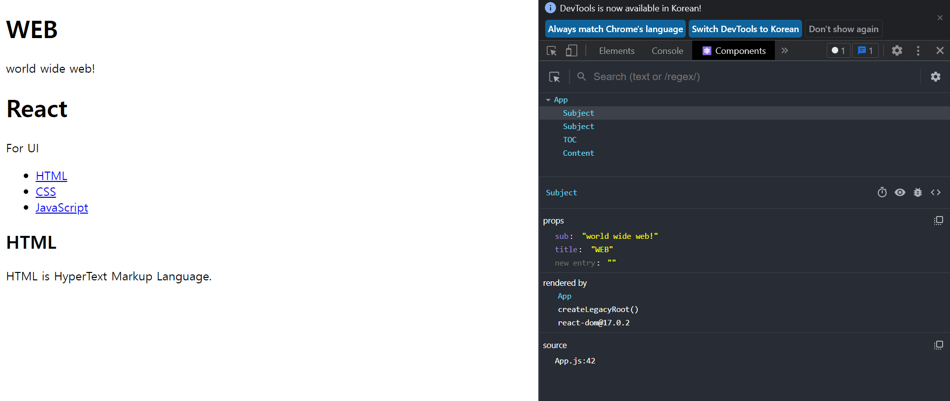 <Subject title = "WEB" sub = "world wide web!"></Subject>