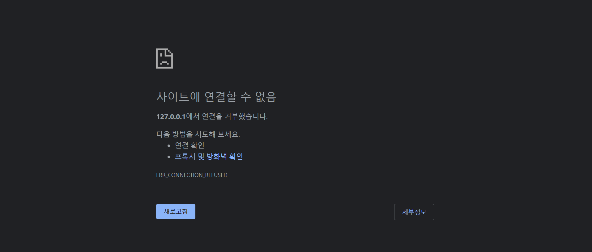 localhost๋ ๋ญ IIS์์ ๋ง ํด๋ ๊ฒฝ๋ก ๋ฐ๊พธ๊ณ ํด์ ์ผ๋ ๋ฑ๋ ๋๊ธด ํ๋๋ 127.0.0.1 ์ด๊ฑด ๊ทธ๋ฅ ์์ ์๋๋ ๊ฒ์ด๋ค...