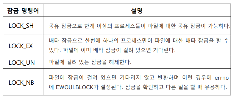 - 하나의 파일 전체에 잠금을 하는 것을 파일 잠금(file locking)이라고 함