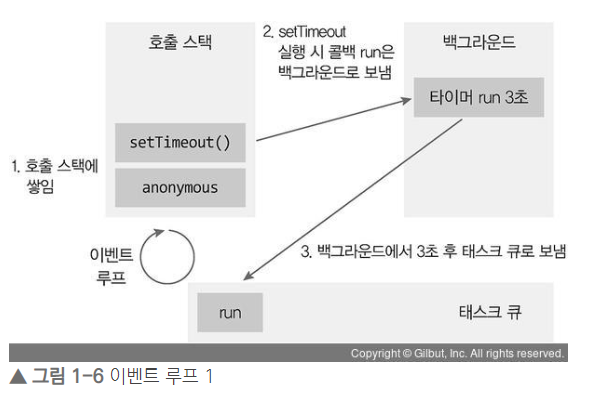 ๋ฐฑ๊ทธ๋ผ์ด๋ : setTimeout ๊ฐ์ ํ์ด๋จธ๋ ์ด๋ฒคํธ ๋ฆฌ์ค๋๋ค์ด ๋๊ธฐํ๋ ๊ณณ. ์๋ฐ์คํฌ๋ฆฝํธ๊ฐ ์๋ ๋ค๋ฅธ ์ธ์ด๋ก ์์ฑ๋ ํ๋ก๊ทธ๋จ์ด๋ผ๊ณ ๋ด๋ ๋จ, ์ฌ๋ฌ ์์ ๋์์ ์คํ ๊ฐ๋ฅ