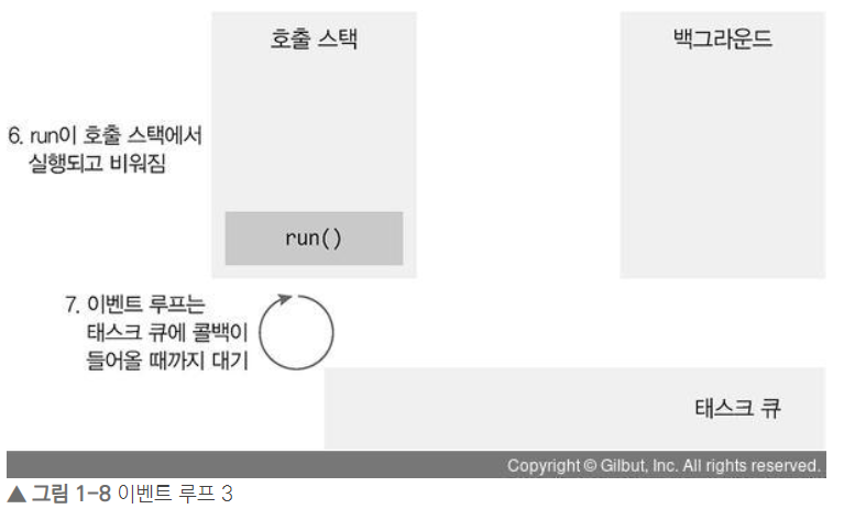 - ์ด๋ฒคํธ ๋ฃจํ๊ฐ run ์ฝ๋ฐฑ์ ํ์คํฌ ํ์์ ๊บผ๋ด ํธ์ถ ์คํ์ผ๋ก ์ฌ๋ฆฐ ์ํฉ