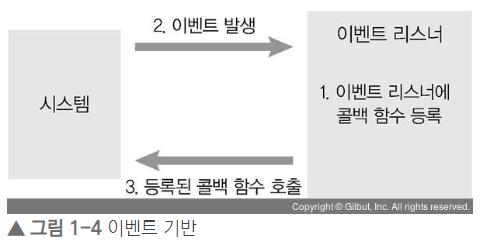 - ์ด๋ฒคํธ ๊ธฐ๋ฐ(event-driven) : ์ด๋ฒคํธ๊ฐ ๋ฐ์ํ ๋ ๋ฏธ๋ฆฌ ์ง์ ํด๋ ์์ ์ ์ํํ๋ ๋ฐฉ์ ์๋ฏธ