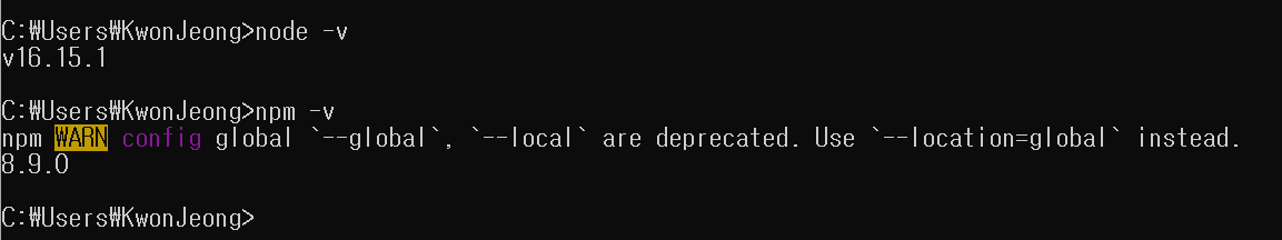 npm WARN config global `--global`, `--local` are deprecated. Use `--location=global` instead. ํด๊ฒฐ