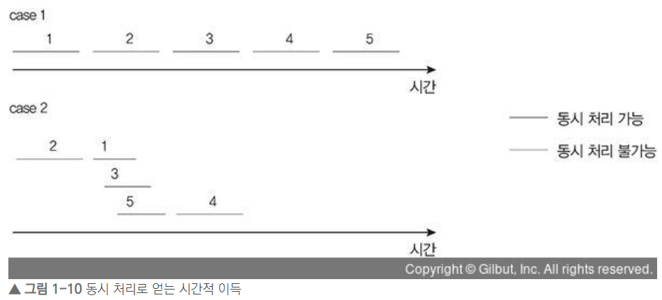 - ํ์ง๋ง ์ฝ๋๋ ๋์์ ์คํ๋์ง ์๊ณ ์คํ ์์๋ง ๋ฐ๋๊ธฐ ๋๋ฌธ์ ์ ์ฒด ์์ ์๊ฐ์ด ์งง์์ง์ง ์๋๋ค.