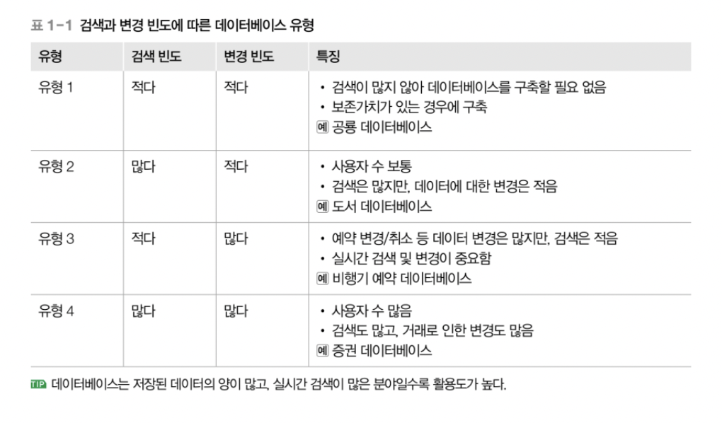 데이터베이스는 데이터의 검색과 변경 작업 주로 수행